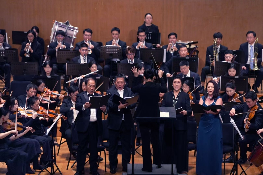 近日,上海城市交响乐团成立20周年音乐会在东方艺术中心奏响。当贝多芬《第九交响曲》第四乐章《欢乐颂》的旋律铺陈开来,旅美男高音费越、旅美男低音岳彩轮及特邀女高音阿曼达·桑托斯和女中音歌唱家刘姗领衔的歌唱家阵容登台,共赴这场跨越10年的音乐之约。这场欢聚奏响的每个音符,也都藏着乐手与指挥家曹鹏跨越时光的深情故事。